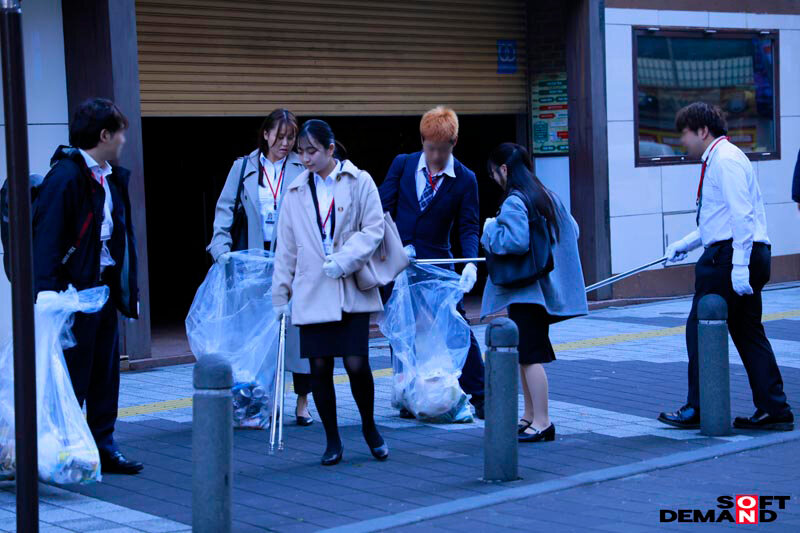 SOD深夜のゴミ拾いの裏でお酒が入って同僚とセックスしていたSOD女子社員4名